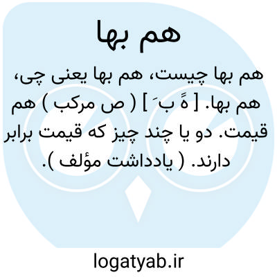 هم بها. [ هََ ب َ ] ( ص مرکب ) هم قیمت. دو یا چند چیز که قیمت برابر دارند. ( یادداشت مؤلف ).