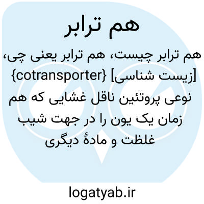 {cotransporter} [زیست شناسی] نوعی پروتئین ناقل غشایی که هم زمان یک یون را در جهت شیب غلظت و مادۀ دیگری را در خلاف جهت شیب غلظت وارد یاخته می کند