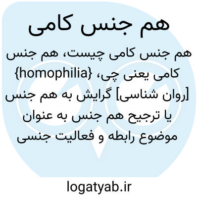 {homophilia} [روان شناسی] گرایش به هم جنس یا ترجیح هم جنس به عنوان موضوع رابطه و فعالیت جنسی