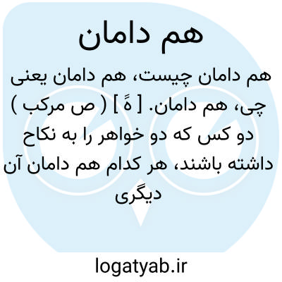 هم دامان. [ هََ ] ( ص مرکب ) دو کس که دو خواهر را به نکاح داشته باشند، هر کدام هم دامان آن دیگری باشند. ( آنندراج ). رجوع به هم داماد شود.