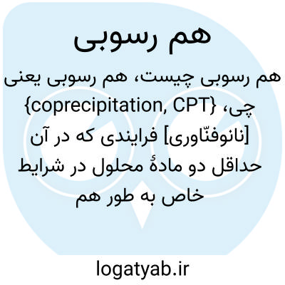 {coprecipitation, CPT} [نانوفنّاوری] فرایندی که در آن حداقل دو مادۀ محلول در شرایط خاص به طور هم زمان رسوب می کنند