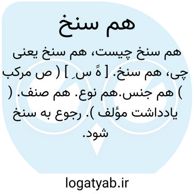 هم سنخ. [ هََ س ِ ] ( ص مرکب ) هم جنس.هم نوع. هم صنف. ( یادداشت مؤلف ). رجوع به سنخ شود.