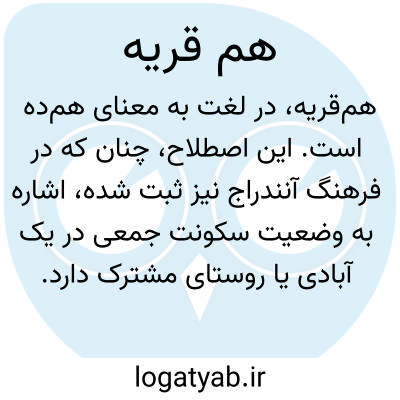 هم‌قریه، در لغت به معنای هم‌ده است. این اصطلاح، چنان که در فرهنگ آنندراج نیز ثبت شده، اشاره به وضعیت سکونت جمعی در یک آبادی یا روستای مشترک دارد. این واژه به دو یا چند تن اطلاق می‌گردد که درون یک قریه (روستا یا آبادی) زندگی می‌کنند و بر اساس هم‌جواری و اشتراک در مکان سکونت، این عنوان را به خود اختصاص می‌دهند. بنابراین، مفهوم هم‌قریه بیش‌تر بر نزدیکی مکانی و اجتماعی افراد در یک واحد جغرافیایی مشخص تأکید دارد. در متون ادبی و تاریخی فارسی، کاربرد این ترکیب نشان‌دهنده‌ی پیوندهای هم‌نشینی و هم‌زیستی در محیط‌های روستایی است و می‌تواند به روابط هم‌سایگی، اشتراک در منابع و پیوندهای جمعی دلالت کند. این واژه از نمونه‌های شاخص ترکیب‌سازی در زبان فارسی است که با حفظ ساختار دستوری و املایی دقیق، بیانگر رابطه‌ی میان ساکنان یک قلمرو مشترک است.