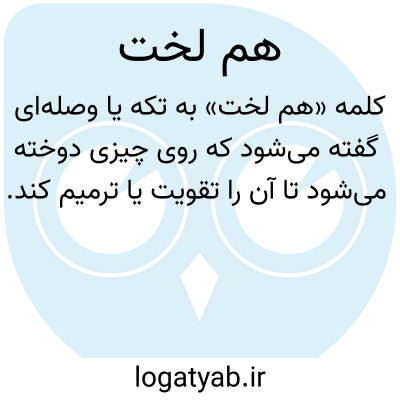 هم لخت. [ هََ ل َ ] ( اِ مرکب ) وصله و پاره که بر چیزی دوزند. ( یادداشت مؤلف ). || نوعی از پای افزار چرمی. ( آنندراج ) ( برهان ):
