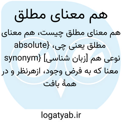{absolute synonym} [زبان شناسی] نوعی هم معنا که به فرض وجود، ازهرنظر و در همۀ بافت ها با واژه یا واژه های دیگر دارای معنی یکسان باشد متـ. مترادف مطلق