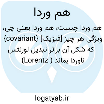 {covariant} [فیزیک] ویژگی هر چیز که شکل آن براثر تبدیل لورنتس (Lorentz ) ناوردا بماند