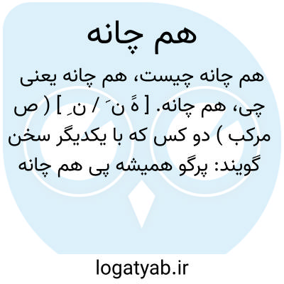 هم چانه. [ هََ ن َ / ن ِ ] ( ص مرکب ) دو کس که با یکدیگر سخن گویند: پرگو همیشه پی هم چانه میگردد. ( یادداشت مؤلف ).