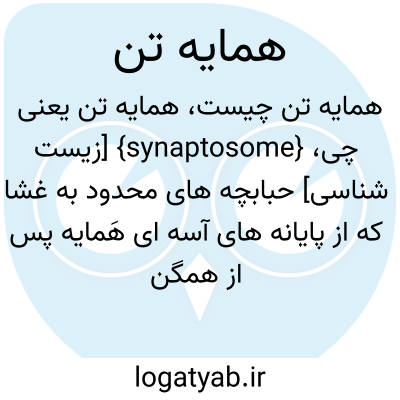 {synaptosome} [زیست شناسی] حبابچه های محدود به غشا که از پایانه های آسه ای هَمایه پس از همگن سازی بافت مغز به دست می آید