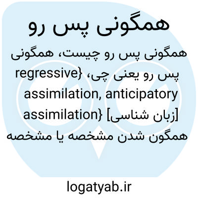 {regressive assimilation, anticipatory assimilation} [زبان شناسی] همگون شدن مشخصه یا مشخصه های یک واحد آوایی با مشخصه یا مشخصه های واحد آوایی پس از آن