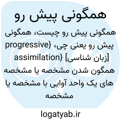 {progressive assimilation} [زبان شناسی] همگون شدن مشخصه یا مشخصه های یک واحد آوایی با مشخصه یا مشخصه های واحد آوایی پیش از آن