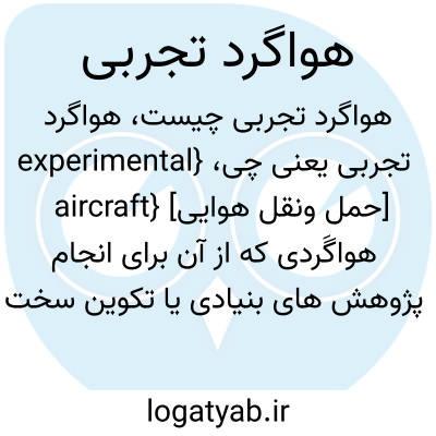{experimental aircraft} [حمل ونقل هوایی] هواگَردی که از آن برای انجام پژوهش های بنیادی یا تکوین سخت افزار انواع هواگَردها استفاده می شود