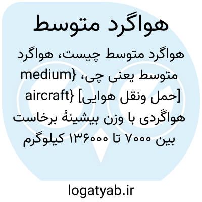 {medium aircraft} [حمل ونقل هوایی] هواگَردی با وزن بیشینۀ برخاست بین 7000 تا 136000 کیلوگرم