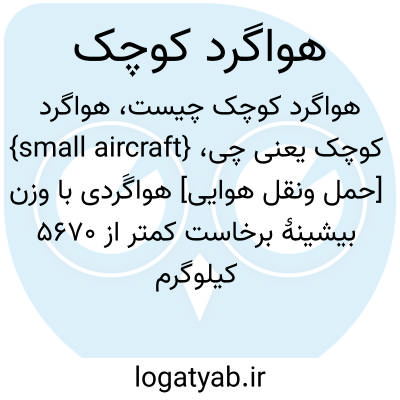 {small aircraft} [حمل ونقل هوایی] هواگَردی با وزن بیشینۀ برخاست کمتر از 5670 کیلوگرم در امریکا یا بین 17 تا 40 تن در انگلستان