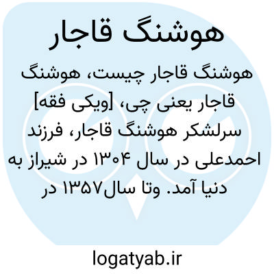 [ویکی فقه] سرلشکر هوشنگ قاجار، فرزند احمدعلی در سال ۱۳۰۴ در شیراز به دنیا آمد. وتا سال۱۳۵۷ در ارتش و اداره ی اطلاعات به درجه ی سرلشکری رسید.
