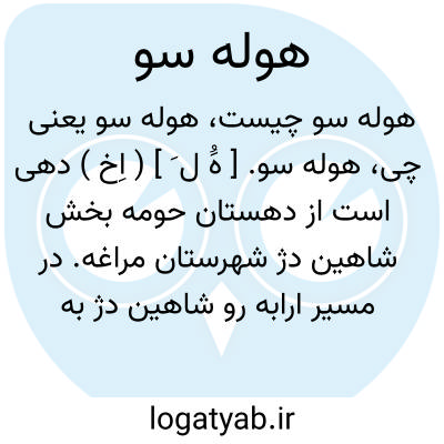 هوله سو. [ هَُ ل َ ] ( اِخ ) دهی است از دهستان حومه بخش شاهین دژ شهرستان مراغه. در مسیر ارابه رو شاهین دژ به تکاب قرار دارد و دارای 1069 تن سکنه است. ( از فرهنگ جغرافیایی ایران ج 4 ).