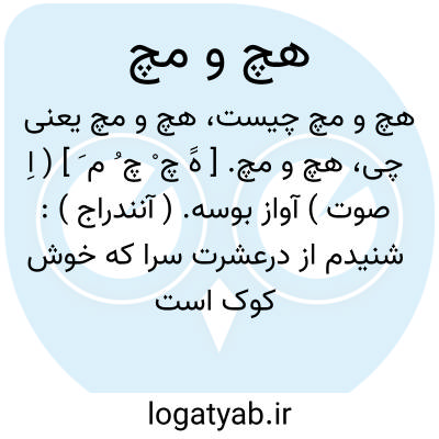 هچ و مچ. [ هََ چ ْ چ ُ م َ ] ( اِ صوت ) آواز بوسه. ( آنندراج ):