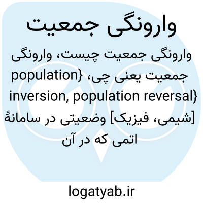 {population inversion, population reversal} [شیمی، فیزیک] وضعیتی در سامانۀ اتمی که در آن تعداد اتم های برانگیخته در تراز بالاتر، از تعداد اتم های تراز پایین تر، بیشتر است