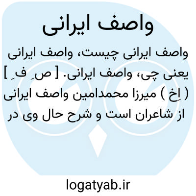 واصف ایرانی. [ ص ِ ف ِ ] ( اِخ ) میرزا محمدامین واصف ایرانی از شاعران است و شرح حال وی در «سفینه خوشگو» و در «نگارستان سخن » تألیف سید محمد صدیق حسن خان بهادر آمده است. ( از فرهنگ سخنوران خیامپور ).
