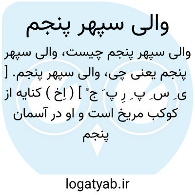 والی سپهر پنجم. [ ی ِ س ِ پ ِ رِ پ َ ج ُ ] ( اِخ ) کنایه از کوکب مریخ است و او در آسمان پنجم میباشد. ( برهان قاطع ) ( آنندراج ).
