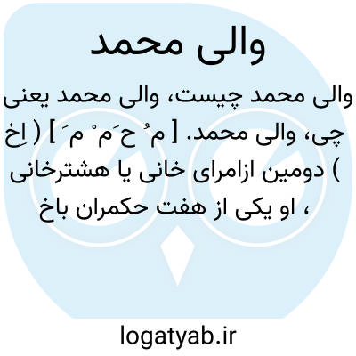 والی محمد. [ م ُ ح َم ْ م َ ] ( اِخ ) دومین ازامرای خانی یا هشترخانی، او یکی از هفت حکمران باخ بود و پس از باقی محمد در 1014 امارت تمام بخارا یافت و تا سال 1017 حکم راند. ( یادداشت مرحوم دهخدا ).
