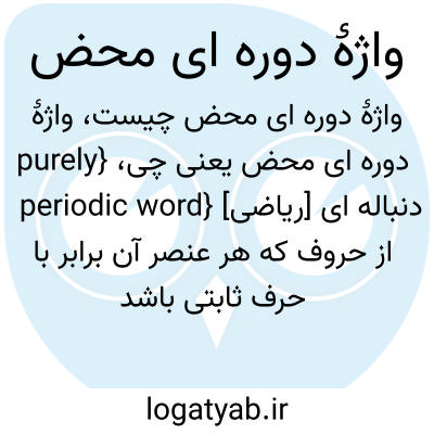 {purely periodic word} [ریاضی] دنباله ای از حروف که هر عنصر آن برابر با حرف ثابتی باشد