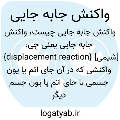 {displacement reaction} [شیمی] واکنشی که در آن جای اتم یا یون جسمی با جای اتم یا یون جسم دیگر عوض می شود