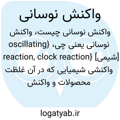 {oscillating reaction, clock reaction} [شیمی] واکنشی شیمیایی که در آن غلظت محصولات و واکنش دهنده ها، در محیط واکنش، به تناوب تغییر می کند چه با تناوب زمانی چه با تناوب مکانی