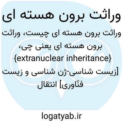 {extranuclear inheritance} [زیست شناسی-ژن شناسی و زیست فنّاوری] انتقال صفات به وسیلۀ دِنای موجود در برخی اندامک ها مانند راکیزه ها و سبزدیسه ها متـ. وراثت برون فام تنی extra chromosomal inheritance وراثت میان یاخته ای cytoplasmic inheritance وراثت مادری maternal inheritance
