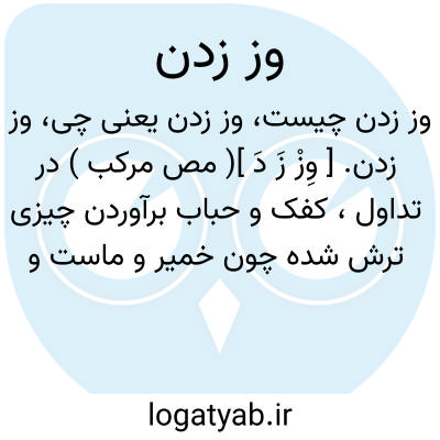 وز زدن. [ وِزْ زَ دَ ]( مص مرکب ) در تداول، کفک و حباب برآوردن چیزی ترش شده چون خمیر و ماست و مانند آن. ( یادداشت مؤلف ). || پوش شدن و مانند نمد شدن مو. ( فرهنگ فارسی معین ). || داشتن چین و شکنهای ریز و درهم. ( فرهنگ فارسی معین از فرهنگ عامیانه جمال زاده ).