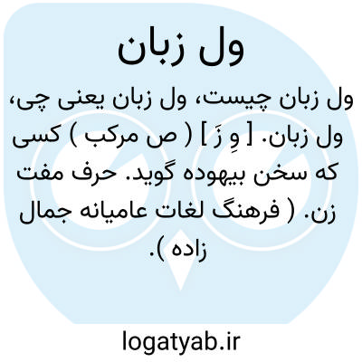 ول زبان. [ وِ زَ ] ( ص مرکب ) کسی که سخن بیهوده گوید. حرف مفت زن. ( فرهنگ لغات عامیانه جمال زاده ).
