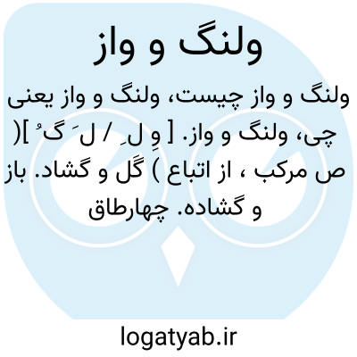 ولنگ و واز. [ وِ ل ِ / ل َ گ ُ ]( ص مرکب، از اتباع ) گَل و گشاد. باز و گشاده. چهارطاق: در را ولنگ و واز گذاشته و رفته بود. || بی حساب وکتاب. بی نظم ونسق. بی ضبطوربط. بی قیدوبند.