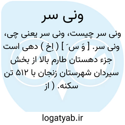 ونی سر. [ وَ س َ ] ( اِخ ) دهی است جزء دهستان طارم بالا از بخش سیردان شهرستان زنجان با 512 تن سکنه. ( از فرهنگ جغرافیایی ایران ج 6 ).