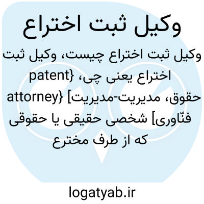 {patent attorney} [حقوق، مدیریت-مدیریت فنّاوری] شخصی حقیقی یا حقوقی که از طرف مخترع انجام امور مربوط به ثبت اختراع از جمله تهیۀ تقاضانامۀ ثبت اختراع و پیگیری های لازم برای به ثبت رساندن آن و نیز دعاوی مربوط به آن را برعهده می گیرد