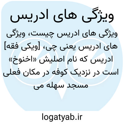 [ویکی فقه] ادریس که نام اصلیش «اخنوخ» است در نزدیک کوفه در مکان فعلی مسجد سهله می زیست. او خیاط بود و مدت سیصد سال عمر نمود و با پنج واسطه به آدم (علیه السّلام) می رسد. سی صحیفه از کتاب های آسمانی بر او نازل گردید.