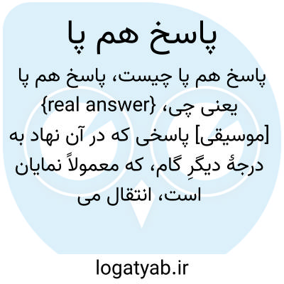 {real answer} [موسیقی] پاسخی که در آن نهاد به درجۀ دیگرِ گام، که معمولاً نمایان است، انتقال می یابد، درحالی که فواصلِ آن عیناً حفظ می شوند