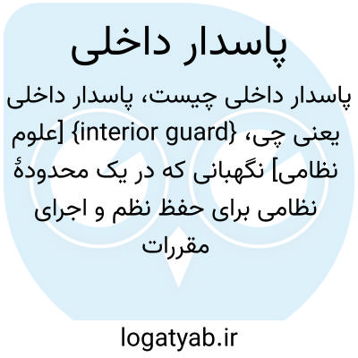 {interior guard} [علوم نظامی] نگهبانی که در یک محدودۀ نظامی برای حفظ نظم و اجرای مقررات پلیس و نگهداری اموال کارکنان یگان فعالیت می کند