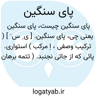 لغت نامه دهخدا پای سنگین. [ ی ِ س َ ] ( ترکیب وصفی، اِ مرکب ) استواری. پائی که از جائی نجنبد. ( تتمه برهان قاطع ). || [ ی ْ س َ ] ( ص مرکب ) آنکه دیردیر بدیدار کسان و دوستان شود.