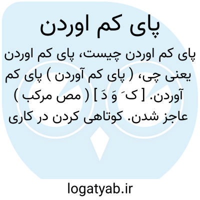 ( پای کم آوردن ) پای کم آوردن. [ ک َ وَ دَ ] ( مص مرکب ) عاجز شدن. کوتاهی کردن در کاری بمقابله کسی. ( غیاث اللغات ):