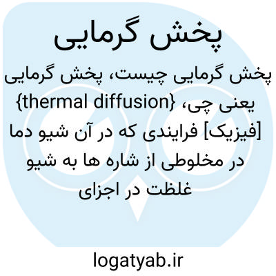 {thermal diffusion} [فیزیک] فرایندی که در آن شیو دما در مخلوطی از شاره ها به شیو غلظت در اجزای آن منجر میشود