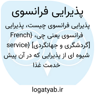 {French service} [گردشگری و جهانگردی] شیوه ای از پذیرایی که در آن پیش خدمت غذا را از سمت چپ به مهمانان تعارف می کند تا آنها خودشان بردارند