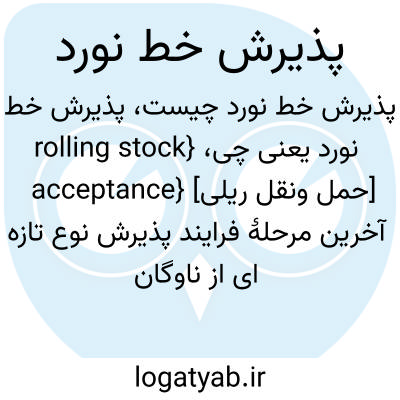 {rolling stock acceptance} [حمل ونقل ریلی] آخرین مرحلۀ فرایند پذیرش نوع تازه ای از ناوگان ریلی و سامانه های داخل قطار و زیرساخت های مربوط به آن در شبکۀ ریلی و راه آهن یک کشور