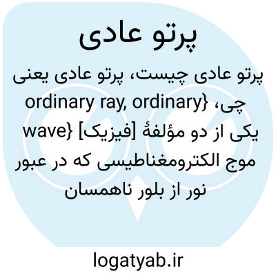 {ordinary ray, ordinary wave} [فیزیک] یکی از دو مؤلفۀ موج الکترومغناطیسی که در عبور نور از بلور ناهمسان گرد تشکیل می شود و از قانون اِسنِل پیروی می کند
