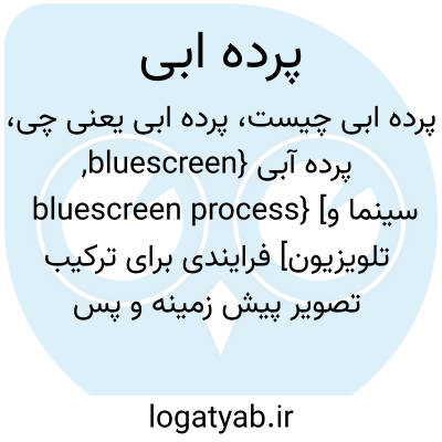 {bluescreen, bluescreen process} [سینما و تلویزیون] فرایندی برای ترکیب تصویر پیش زمینه و پس زمینه که در آن بازیگران در مقابل یک پردۀ آبی یا سبز بازی می کنند و بخش پس زمینه، در پس تولید، با فرایند برش فام با تصویری رایانه ای جایگزین می شود