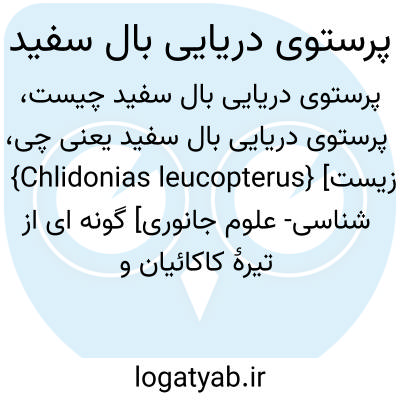 {Chlidonias leucopterus} [زیست شناسی- علوم جانوری] گونه ای از تیرۀ کاکائیان و راستۀ سلیم سانان با بدن سیاه که زیر بال هایش سفید مایل به خاکستری است