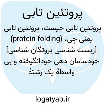 {protein folding} [زیست شناسی-پروتگان شناسی] خودسامان دهی خودانگیخته و بی واسطۀ یک رشتۀ بس پپتیدی واتابیده یا نوظهور به صورت یک ساختار سه بعدی منحصربه فرد