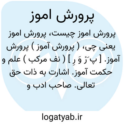 ( پرورش آموز ) پرورش آموز. [ پ َرْ وَ رِ ] ( نف مرکب ) علم و حکمت آموز. اشارت به ذات حق تعالی. صاحب ادب و علم و حکمت. معلم. صاحب مجاهده و سلوک. پیر. مرشد. هادی. ( تتمه برهان ).