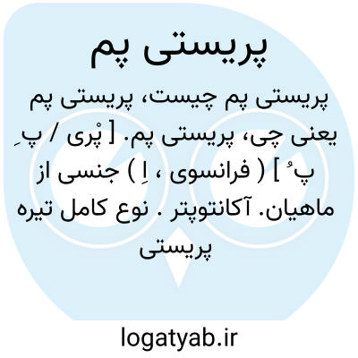 پریستی پم. [ پْری / پ ِ پ ُ ] ( فرانسوی، اِ ) جنسی از ماهیان. آکانتوپتر. نوع کامل تیره پریستی پوماتینه. مشتمل بر انواع متعدد که در دریاهای گرم منتشر است.