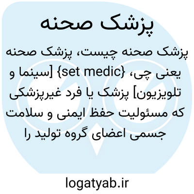 {set medic} [سینما و تلویزیون] پزشک یا فرد غیرپزشکی که مسئولیت حفظ ایمنی و سلامت جسمی اعضای گروه تولید را در جریان تهیۀ فیلم بر عهده دارد