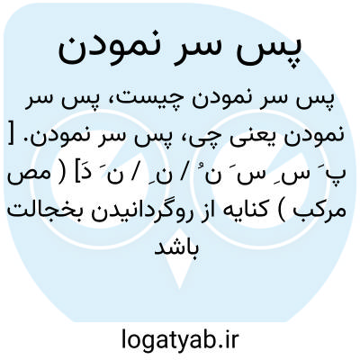 پس سر نمودن. [ پ َ س ِ س َ ن ُ / ن ِ / ن َ دَ] ( مص مرکب ) کنایه از روگردانیدن بخجالت باشد و کسی را که مخل طبیعت باشد بلطایف الحیل از سر وا کردن. ( برهان قاطع ). روگردانیدن از خجالت. ( فرهنگ رشیدی ).