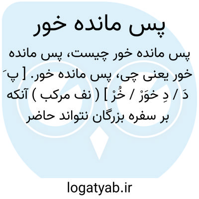 پس مانده خور. [ پ َ دَ / دِ خوَرْ / خُرْ ] ( نف مرکب ) آنکه بر سفره بزرگان نتواند حاضر آمدن و لکن پس از آنکه آنان صرف طعام کنند جزو چاکران و خدمتکاران بقیه طعام تواند خوردن. باقی خوار. سؤرخوار.